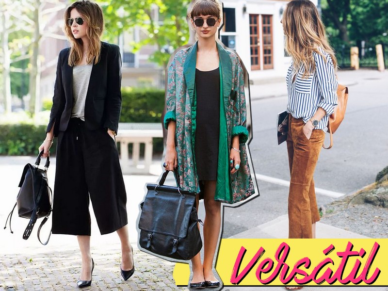 Tem os modelos mais fashions que se parecem bolsas, funcionam muito bem para quem gosta dos looks mais arrumadinhos, para ambientes de trabalho, corporativos e etc. O ideal para quem quer usar a mochila no look de trabalho, é mesmo optar pelos modelos mais simples, com cores neutras e de materiais mais “arrumadinhos”, como o couro.